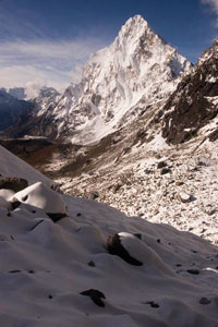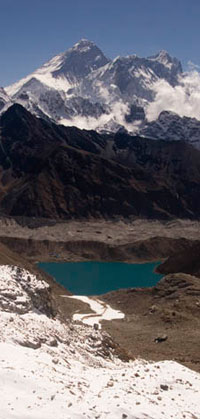 Gokyo Valley: Probably the second most popular route in the region, but deservedly popular. The Gokyo Valley is beautiful strewn with lakes all the way up the valley until the Tibetan border and the mighty 8201 m Cho Oyo. The valley also has some of the best views of Mt. Everest in Nepal. The view from "Knobby View" between the 5th and 6th lakes is one of the best trekking view points in the Himalayas.