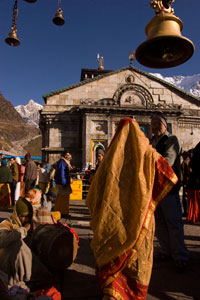Kedarnath The setting of the temple at Kedarnath is the most impressive of any of the Char Dham temples. Its backed by a white wall of rock and ice. From the end of the road at Gaurikund, its a 14 km hike along a very wide and obvious pilgrim trail. There is plenty accommodation available from pilgrim lodges at Kedarnath and food is available both at Kedarnath and from stalls along the trail. Its possible to hike up to Kedarnath in a long day hike from Gaurikund but its much better to spend at least one night and use Kedarnath as a base to hike up further into the mountains. There are two lakes within day hiking range, Gandhi Sarovar (a relatively short hike up to a glacial lake north of Kedarnath where some of Gandhi's ashes were scattered), and Vasuki Tal (a longer hike to hike to a lake over the eastern ridge).