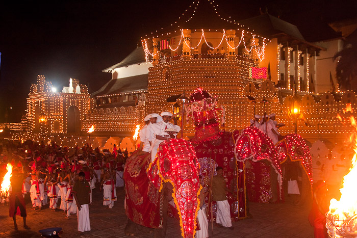 Esala Perahera, 2nd day of the Randoli Perahera, Kandy passes in front of the Temple of the Tooth in Kandy