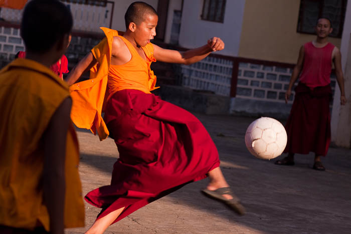 Monks playing soccer, Sera Monastery, Tibetan exile settlement.