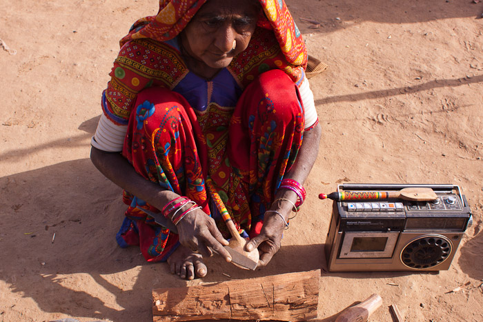Wada woman, lacquer production, Nirona, Kutch, Gujarat, India