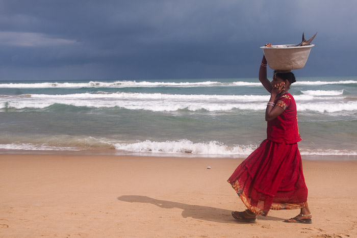 Bringing in the catch at the fishing village along Puri’s beach