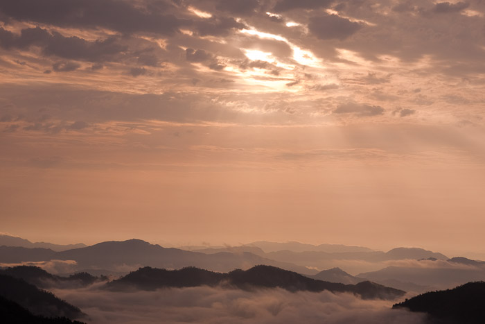 View from the Phawngpui (Blue Mountain) the highest mountain in Mizoram at 2158 m (7080 ft)