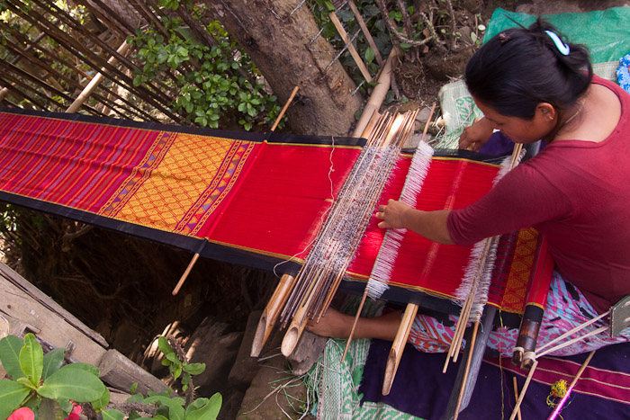 Chakma woman weaving traditional dress, Kamalanagar (Chawngte)