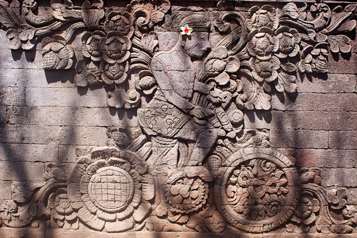 Famous image of a Dutch cyclist, on the wall of the temple Pira Maduwe Karang, Kubutambahan, Bali, Indonesia