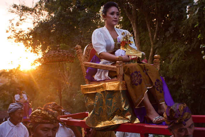Daughter of Tjokorda Putra Dharma Yudha, after performing a purification ritual a day before the Royal cremation ceremony for her father, Ubud, Bali, Indonesia