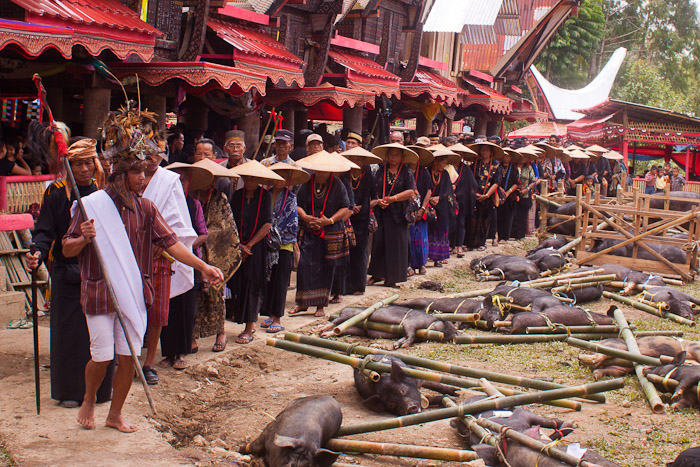 Receiving of the guest at a Toraja Funeral Ceremony in Bonga, Tana Toraja, Sulawesi, Indonesia