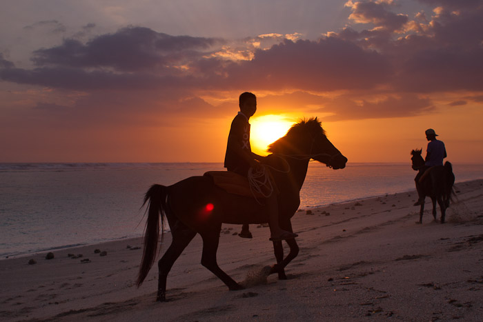 Local boys on a sunset ride on the beach near Pero, Sumba, Indonesia