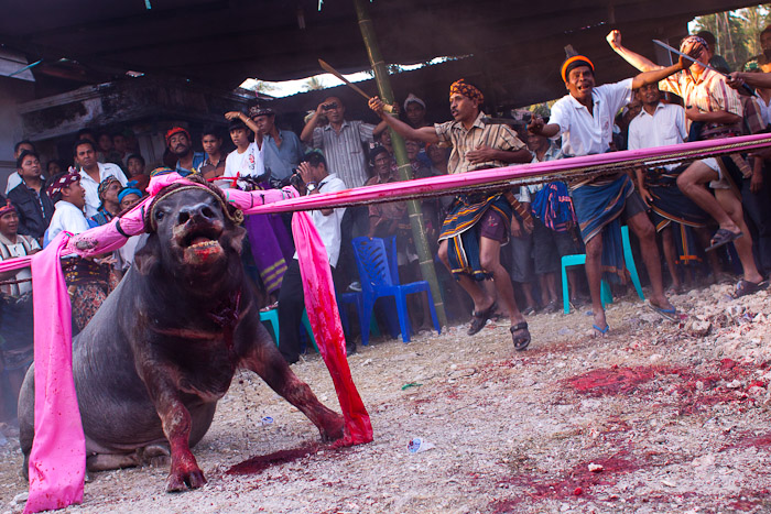 Sacrifice of a buffalo, at a funeral in Elopada, West Sumba, Indonesia